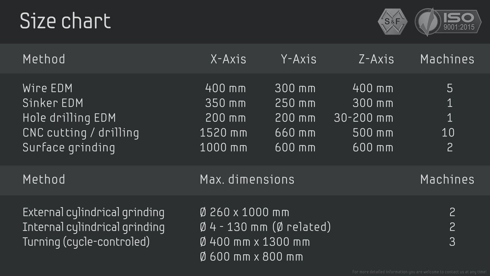 The Internet pages of the S&F Maschinen- und Werkzeugbau GmbH use cookies. Cookies are text files that are stored in a computer system via an Internet browser.